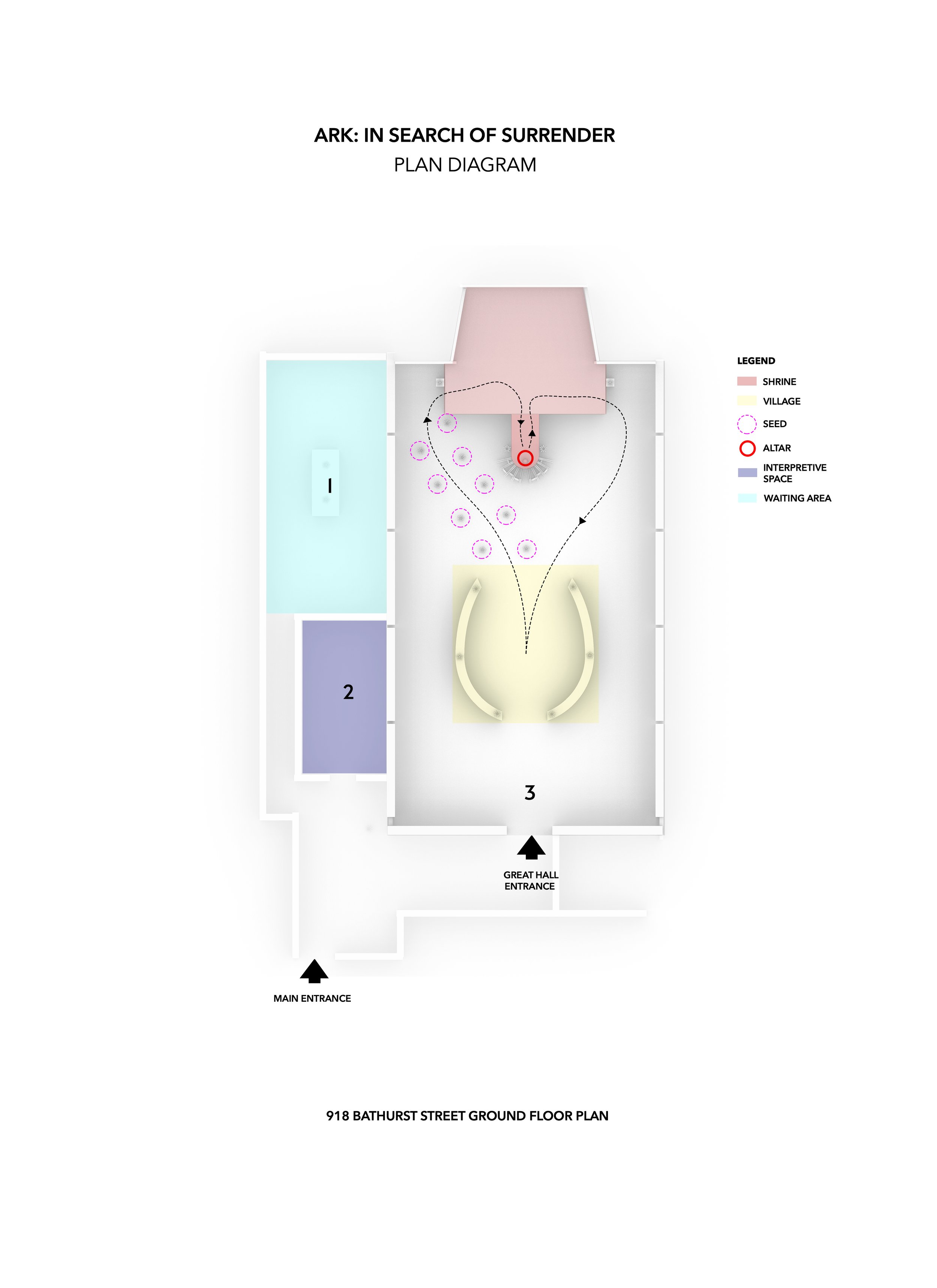 Ark: In Search of Surrender is a participatory, site-specific architectural ritual that tests how somatic awareness, unscripted performance, and spatial design can forge vulnerability and collective identity among 200 strangers in Toronto.